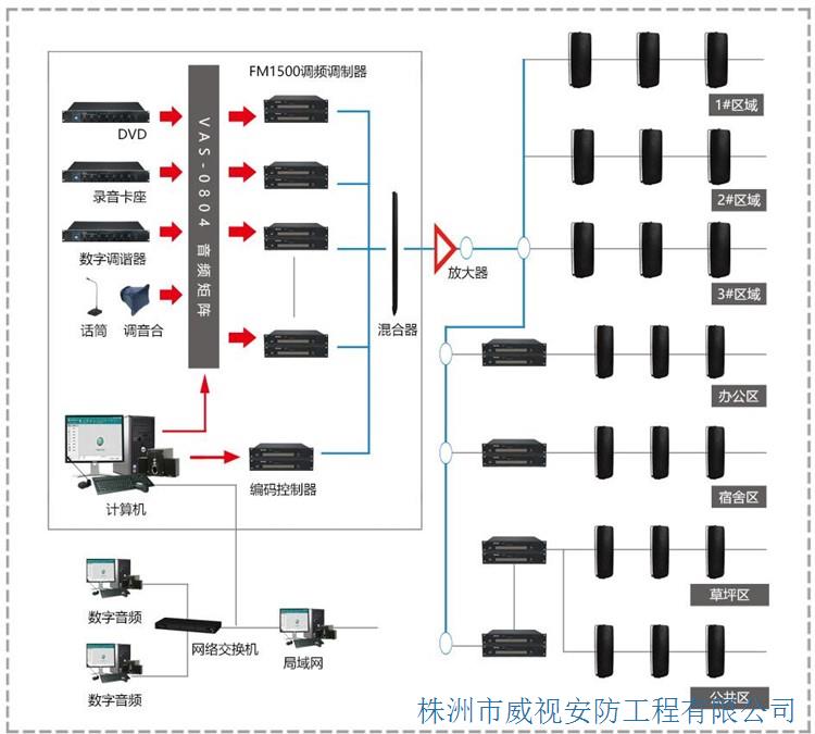 公共廣播系統(tǒng)是在有限范圍內(nèi)為公眾服務的廣播。在常規(guī)情況下,公共廣播信號通過布設在廣播服務區(qū)的廣播線路傳輸,是一種單向的有線廣播。用于發(fā)布內(nèi)部信息、發(fā)布作息信號、提供背景音樂以及用于尋呼和強行插入災害性事故緊急廣播等。